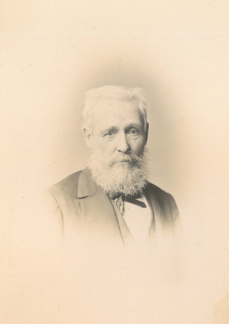 Black and white photographic studio portrait of Professor Theophilus Redwood (1806-1892 Redwood registered with the Pharmaceutical Society of Great Britain in 1841 and was Professor at the School of Pharmacy 1842-1846, Professor of Chemistry and Pharmacy 1846-1885 and Director of Laboratory 1844-1862.